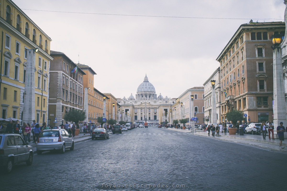 Au début, nous voulions visiter la Basilique dès le matin, mais étant dimanche, cela se révèle mission impossible : basilique fermée, messe du Pape, Marielle et Jon dehors ! Bref, oubliez le dimanche mais, pour tous les autres jours de la semaine, n’hésitez pas à y aller tôt dès l’ouverture à 8h30 pour éviter l’afflux de touristes. L’accès à la basilique est gratuite mais celui de la coupole est payant.