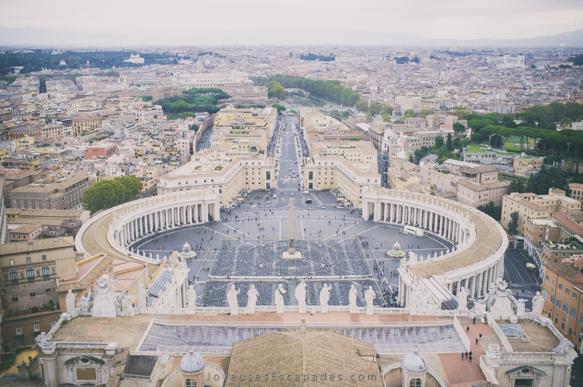 Elle est, elle même, très imposante et pour cause… le Bernin avait pour consigne de construire une esplanade pouvant accueillir tous les fidèles venus écouter les allocutions du Pape. Il ne devait pas beaucoup dormir en pensant à son cahier des charges, ce pauvre homme…Mais, pari réussi si on se réfère aux dimensions du mastodonte !